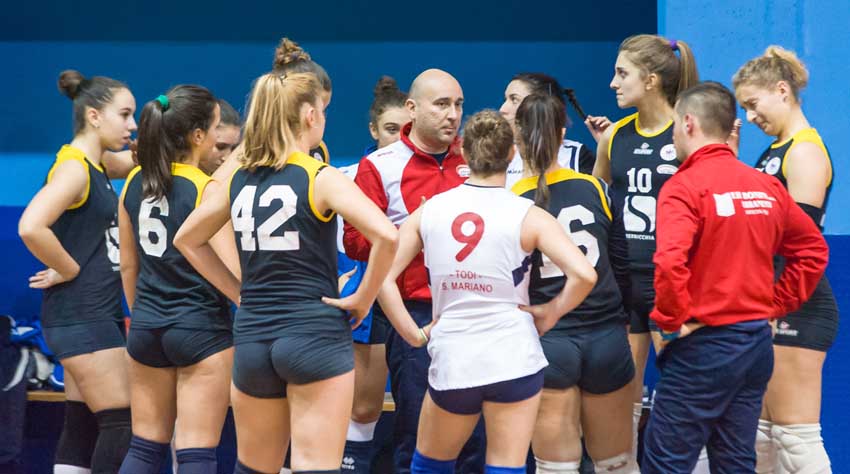 Nella seconda giornata di ritorno del campionato under 16 femminile di eccellenza regionale le ragazze del Todi – San Mariano, prime in classifica, hanno espugnato la palestra di San Marco tana delle pari categoria della School Volley Perugia, seconde in classifica, con un perentorio ed autorevole tre a zero (16-25, 18-25, 22-25) al termine di un match divertente e ben giocato. Le ragazze dei coach Roberto Farinelli e Massimiliano Urbani, bissando il successo della gara di andata ottenuto in quel di Todi con lo stesso punteggio, hanno saldamente confermato la leadership nel girone mantenendo l’imbattibilità ed ipotecando il primo posto nella prima fase del torneo, in forza ai sei punti di vantaggio rispetto alla seconda. Certamente un passo importante, anche se non definitivo, in vista dei play-off, confortato dal buon livello di gioco espresso dalle atlete e dalla sempre più crescente e consolidata sintonia fra le seguenti giocatrici del roster: Giulia Antonini, Gaia Bragetti, Giada Bonini, Sara Ciancio, Benedetta Donati, Emily Federici, Giulia Maggi, Maria Vittoria Martinoli, Virginia Morarelli, Federica Miorelli, Eva Palomba, Benedetta Urbani, Letizia Valocchia, Paola Vata