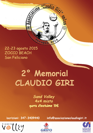 2° Memorial Claudio Giri (locandina)Manca circa un mese al grande appuntamento di pallavolo sulla sabbia che chiuderà ufficialmente la stagione estiva. La società sportiva Pianeta Volley e l’associazione benefica Claudio Giri Onlus sono pronte a mandare in scena la seconda edizione del Memorial Claudio Giri in ricordo di un personaggio che ha lasciato un segno indelebile nella disciplina delle schiacciate. Si rinnova dunque l’attesissimo appuntamento che lo scorso anno riscosse un grande apprezzamento e registrò una notevole partecipazione di atleti e di pubblico. Sarà ancora lo stabilimento balneare Zocco Beach di San Feliciano ad ospitare la competizione che nei giorni di sabato 22 e domenica 23 agosto scalderà il litorale lacustre, leggermente diversa la formula della manifestazione che sarà adottata stavolta, la scelta è ricaduta infatti sul torneo 4×4 misto con squadre composte da due donne e due uomini. Immutato l’intento dei responsabili che è quello di raccogliere fondi da destinare a scopi benefici per chi combatte il cancro, malattia che ha strappato Claudio all’affetto dei suoi cari il 2 aprile 2014. La proposta ha subito trovato il consenso di alcuni partner commerciali che saranno al fianco del comitato promotore in questa nuova avventura. Le iscrizioni sono aperte e le adesioni possono già pervenire agli organizzatori che tentano in ogni maniera di stimolare e promuovere la disciplina. L’attività ferve dietro le quinte per mettere a punto una manifestazione sportiva che sia prima di tutto una festa ed una occasione di incontro tra tanti amici per un evento che sia una volta di più indimenticabile. È stata attivata la info-line al numero 347-3409440 ed alla e-mail info@associazioneclaudiogiri.it per ogni chiarimento o delucidazione riguardante le iscrizioni. L’evento sarà creato sotto l’egida del Csi Perugia che si è reso ancora una volta disponibile a coordinare e supportare l’impegno degli addetti ai lavori.