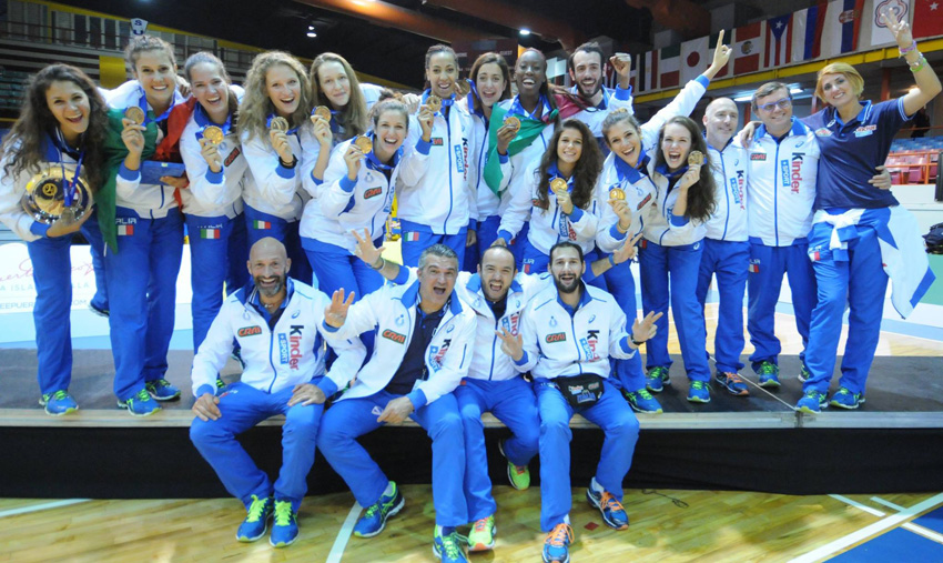 la squadra della nazionale italiana under 20 femminile con la medaglia al collo