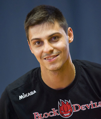 L’ennesima doppia seduta giornaliera di questa prima fase di preparazione riempie l’agenda di oggi della Sir Safety Conad Perugia. Mattina dedicata alla parte fisica, pomeriggio al Pala-Evangelisti con contorni più tecnici e tattici per la comitiva bianconera che prosegue senza soste il proprio avvicinamento al campionato. Avvicinamento che prevede naturalmente alcuni test match per ‘sfogare’ sul campo contro un avversario tutta la mole di lavoro fatta al palazzetto. Definite in tal senso dal direttore sportivo Goran Vujevic le prime amichevoli precampionato con Perugia che scenderà in campo il 23 settembre a Tuscania (squadra di A2 dove militano gli ex Paolucci e Cesarini), il 30 settembre tra le mura del palasport perugino con Siena (A2), il 6 ottobre sempre a Perugia contro Sora (A2) alle ore 16.30, il 15 ottobre in casa contro Tuscania ed il 21 ottobre a Siena. Inoltre il 10 ed 11 ottobre i bianconeri saranno di scena ad Ortona per un torneo quadrangolare. E sul taccuino della dirigenza ci sono altri appuntamenti ancora da definire. Saranno questi dunque i primi banchi di prova per i vecchi e soprattutto per i nuovi block-devils. Tra i quali scalpita, forte dei suoi ventiquattro anni, il giovane regista bulgaro Dobromir Dimitrov che sta destando a tutti un’ottima impressione e che spiega propositi ed ambizioni per la stagione alle porte: «I miei primi venti giorni qui a Perugia sono stati eccitanti. Sono stati giorni anche un po’ duri perché stiamo svolgendo una preparazione pesante adesso. Ci alleniamo tanto ed è ovvio visto l’inizio di stagione. Ma sono stati venti giorni nei quali sono stato molto bene e penso che sarà così per tutto l’anno». Dimitrov sa bene di essere parte di un team di tutto rispetto e di far parte di un reparto, quello dei registi, che annovera come collega De Cecco. «Credo che Perugia sia una squadra molto forte, con giocatori importanti scelti e selezionati accuratamente. Ed ho un compagno di reparto come De Cecco che mi piace tantissimo! Vorrei imparare tante nuove cose da lui per crescere e migliorare il mio livello. Sono giovane per il mio ruolo in campo e sono qui per imparare. Ma per fortuna imparo velocemente». Il bulgaro è un ragazzo sveglio, come si usa dire al giorno d’oggi, ed è anche ambizioso. «L’obiettivo della squadra, ed anche il mio obiettivo, è poter giocare le finali, raggiungere il miglior piazzamento possibile in campionato ed in coppa Cev. Vorrei anche crescere come giocatore ed acquisire maggiore esperienza». Per concludere fa una promessa. «A quando la mia prima intervista in italiano? Penso presto, tra qualche mese. Diciamo che spero verso novembre, massimo dicembre».
