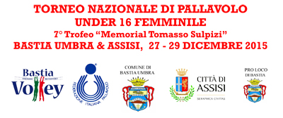 Puntuale come ogni anno torna a Bastia Umbra l’evento nazionale giovanile più importante del territorio riservato alla categoria under 16 femminile. Dopo il successo degli anni trascorsi il torneo è divenuto ormai uno dei più importanti a livello italiano per organizzazione, livello tecnico e divertimento. Numerose le richieste da ogni parte d’Italia che giungono ogni anno alla società organizzatrice, la Bastia Volley, che sta già lavorando al meglio per la logistica delle squadre che arriveranno nel cuore verde umbro dal 27 al 29 dicembre 2015. Le squadre alloggeranno in hotel convenzionati 3 e 4 stelle nei comuni di Bastia Umbra ed Assisi. Il trofeo è stato recentemente intitolato alla memoria di Tomasso Sulpizi, noto dirigente ed organizzatore di numerosi eventi sportivi a livello locale con infaticabile impegno sin dagli anni ottanta come segretario e tesoriere della società sportiva bastiola. L’evento è riservato alla squadre provenienti da fuori regione Umbria. Per informazioni ed iscrizioni è possibile scrivere una mail a bastiavolley@libero.it oppure consultare il sito internet http://bastiavolley.weebly.com dove è possibile scaricare anche l’indizione del torneo e il modulo di iscrizione. Per ulteriori approfondimenti è possibile contattare telefonicamente: Fabrizio 339-7838847, Emidio 349-7364988, Luca 339-5325872.