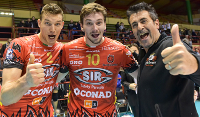 In una giornata non proprio splendente sia per quanto riguarda il gruppo che le individualità la Sir Safety Conad Perugia riesce comunque a cavarsela. La notizia è il bottino pieno che i block-devils hanno raccolto, facendo a meno per lunghi tratti della partita del loro uomo simbolo, quello che risponde al nome di Atanasijevic apparso stanco e l’ombra di quello che tre giorni prima aveva castigato a dovere la forte Trento. Al suo posto la ribalta è stata tutta per Georgios Tzioumakas (eletto mvp del match)che ha fatto davvero bene quando è entrato in campo e per Fromm che ha dimostrato di attraversare un ottimo momento con quesi venticinque palloni a terra che hanno sospinto alla vittoria. È stato in primis il presidente Gino Sirci a rimarcarlo: «Tzioumakas ha dimostrato di essere un ottimo opposto di riserva, ha dimostrato che c’è e ci è servito tantissimo. Stavolta Atanasijevic c’era un po’ poco, quindi è stato giusto farlo giocare. È cresciuto molto come giocatore e non è un caso che sia stato eletto il miglior giocatore della gara, un titolo che si è guadagnato perché dobbiamo a lui questa vittoria. Domenica contro Civitanova Marche sarà una battaglia, speriamo sia una battaglia da vincere, vogliamo consolidare questo trend di vittorie. I marchigiani sono forti ma battibili, dobbiamo giocare bene, attaccare bene, difendere bene, battere bene. Nei fondamentali dobbiamo essere bravissimi. Sarà una bella sfida, ma assolutamente dobbiamo vincere se vogliamo essere protagonisti di questo campionato». Un successo che il libero Andrea Giovi ha commentato così: Siamo stati bravi a portare a casa questi tre punti, soprattutto perché siamo partiti un po’ male, ma poi abbiamo accelerato e giocato sicuramente meglio. Abbiamo avuto in realtà la partita in pugno, perché loro sono venuti fuori dopo, e noi siamo un po’ calati alla fine. Ce la siamo sudata questa gara, ma sono tre punti importanti. Il problema è che giocando ogni tre giorni, fai fatica a tenere alto il livello per due ore di gioco. Oggi siamo stati davvero bravi a risolvere le situazioni spinose, bisogna ricordare che non sempre si vince giocando bene. Devo dire che oggi è stato molto bravo Tzioumakas, è un ragazzo che merita questi momenti e sa farsi trovare sempre pronto quando serve, sia per lui che per tutta la squadra. Domenica c’è una sfida importante, arriviamo freschi di vittorie e carichi di lavoro. Sappiamo che Civitanova Marche è un’altra corazzata, sappiamo quello che ci aspetta e siamo pronti per una grande sfida».