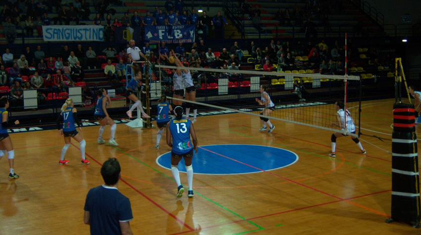 Un rodaggio alquanto difficile, durato un set intero e una bella fetta di quello successivo. Poi, una volta ripresa in mano la situazione con il raggiungimento del pareggio, la Top Quality San Giustino ha riproposto la sua vera veste sul rettangolo della Volley Club Cesena ha firmato un 3-1 che allunga a cinque la striscia di vittorie piene e che permette alle biancoazzurre di balzare sul secondo gradino della classifica di serie B1 femminile. Una Mirka Francia ancora all’altezza della situazione e i cambi azzeccati al momento giusto dal tecnico Alessandro Della Balda hanno permesso di invertire una rotta che rischiava di farsi pericolosa, anche se le romagnole non hanno mollato un attimo, facendo sì che nei frangenti finali dominasse sempre la suspense. In avvio Cesena schiera la palleggiatrice Baravelli, l’opposta Altini, la coppia centrale Piolanti-Gardini, a lato la Brina e la Calisesi e libero Nicoletta Fabbri. San Giustino risponde con il 6+1 di sempre, diagonale Izzo-Francia, al centro La Rocca e Spicocchi, alla banda Tosi e Falotico e libero Giorgi. Le ospiti partono bene sul turno in battuta della Izzo (0-4), ma poi incappa in un autentico black-out, subendo un parziale di dodici ad uno con la Brina a suonare inizialmente la riscossa per il Cesena e il muro a dire due volte no a Mirka Francia. Anche Altini fornisce il suo contributo a muro e in attacco; il vantaggio delle padrone di casa aumenta in progressione geometrica e i due errori in attacco della Tosi dopo una schiacciata vincente stanno a significare che San Giustino ancora non c’è. Gli ace della Di Fazio e della Brina fanno assumere al punteggio proporzioni ancora più vistose e a chiudere è un attacco di Piolanti. Il secondo set vede le altotiberine conquistare i primi tre punti su altrettanti errori in battuta, e saranno diversi, delle locali, che però sono più reattive e attente, soprattutto in difesa. All’ace di Falotico che porta le squadre sul 6-6 fa seguito un altro break di quattro punti delle romagnole ed allora il tecnico Della Balda toglie Jessica La Rocca per inserire Gemma Vescovi. Nel frattempo, Sofia Tosi e Mirka Francia scaldano la spalla ed un attacco out della Brina dalla seconda linea riporta la situazione in parità (11-11). A questo punto, sono gli errori ingenui a ridare fiato al Cesena, nonostante Mirka Francia faccia rimanere la squadra attaccata alle avversarie, che hanno sempre la Brina pronta a colpire e la Piolanti ottima al centro. Una pipe fuori della Francia favorisce Cesena (18-16) e Della Balda chiede il time-out; al muro vincente della Altini sulla Tosi risponde il palleggio lungo della Izzo, ma la Gardini e l’astuta Baravelli portano Cesena sul 22-19 e Della Balda opta per Giulia Bartolini al posto di Chiara Falotico. Proprio della Bartolini sono i due punti che permettono a San Giustino di andare sul 23-23, poi anche la difesa si aggiusta; un mani-fuori della Francia e un muro vincente della Vescovi sulla Brina confezionano la parità. Terza frazione con Giulia Bartolini confermata il turno e Jessica la Rocca di nuovo in campo. Il turno in battuta della Izzo produce il 3-1 per Sofia Tosi (due attacchi e un ace), anche se Cesena risponde subito e va sul 5-5 al servizio con Piolanti. Le umbre hanno tuttavia iniziato a giocare alla loro maniera, toccando diversi palloni a muro e anche la Bartolini garantisce il giusto apporto dalla banda colpendo sia di potenza che di precisione. Un lunghissimo e spettacolare scambio concluso in schiacciata da Izzo determina il più tre, cui segue l’ace della Francia per il 6-10 che costringe il tecnico Simoncelli a chiedere il time-out. Sul massimo scarto 7-13, coach Simoncelli richiama la Brina, ma Francia e Tosi sono le autrici dei punti che tengono avanti San Giustino, fino a quando un primo tempo di Piolanti e un muro di Gardini sulla Francia non ridanno breve fiducia alle bianconere, Bartolini, Tosi e Francia scavano il fosso fino al 14-21 e la pipe vincente di Francia che fa 16-22 sembra aver chiuso i giochi. Cesena, con Budini entrata in regia, recupera terreno sul turno in battuta di Gardini, con anche un ace, Vescovi in luogo di La Rocca, e un muro vincente di Piolanti su Francia, che conclude per giunta un attacco fuori dalla seconda linea. Sul raggiunto 22-22, Brina riesce nell’intento di chiudere la palla del 23-23. Una pipe di Francia e un mani-fuori da posto-due di Tosi permettono alle ospiti di riprendersi un set già vinto ma rimesso seriamente in discussione e di passare in vantaggio due ad uno. Sulle ali della frazione vinta, Izzo e compagne partono spedite con uno 0-5 sulla battuta di La Rocca che ha per protagonista principale Martina Spicocchi e la sua precisione nel trovare il campo sulle fast. Il primo punto cesenate arriva sullo 0-6. Una veloce della Piolanti vuole dare la scossa a Cesena, che arriva fino al 5-9, poi deve fare i conti con Mirka Francia e con Jessica La Rocca che piazza un muro dei suoi. Un ace di Francia consegna il massimo vantaggio (5-13), il tentativo di Cesena è subito rintuzzato dall’ace di Bartolini e dall’attacco vincente di una La Rocca più tonica e autrice anche del diagonale in fast che manda le due squadre al secondo time-out tecnico sul 10-16. Rientra la Vescovi che si distingue con le sue insidiose battute e il divario sale di nuovo ad otto punti; le locali dimezzano il gap ma una diagonale di Tosi e una parallela di Francia danno il via definitivo alla vittoria (14-23). Un attacco fuori bersaglio di Brina ed il muro di Spicocchi su Piolanti chiudono i giochi. A fine gara, il tecnico Alessandro Della Balda può gioire per una vittoria da tre punti dopo che si era messa davvero male: «Abbiamo fatto tanta fatica perché siamo arrivati in campo non pronti per la battaglia e in più abbiamo fatto tanti regali. Poi però la squadra si svegliata in tempo e, grazie anche a cambi, ha ribaltato le sorti in suo favore. «Questo è vero, ma fino a quando non subentrerà un minimo di es